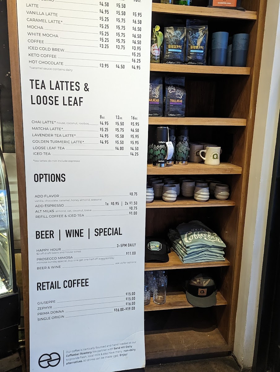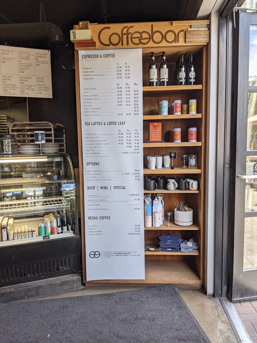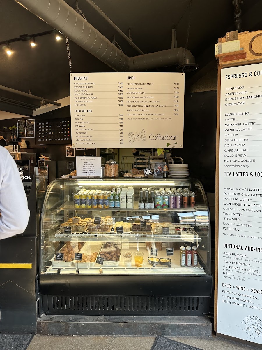 - Tea: For tea lovers, Coffeebar offers a refreshing Iced Tea from Davidson's Organics, and unique blends like the Coconut Chai Latte and Matcha Latte.